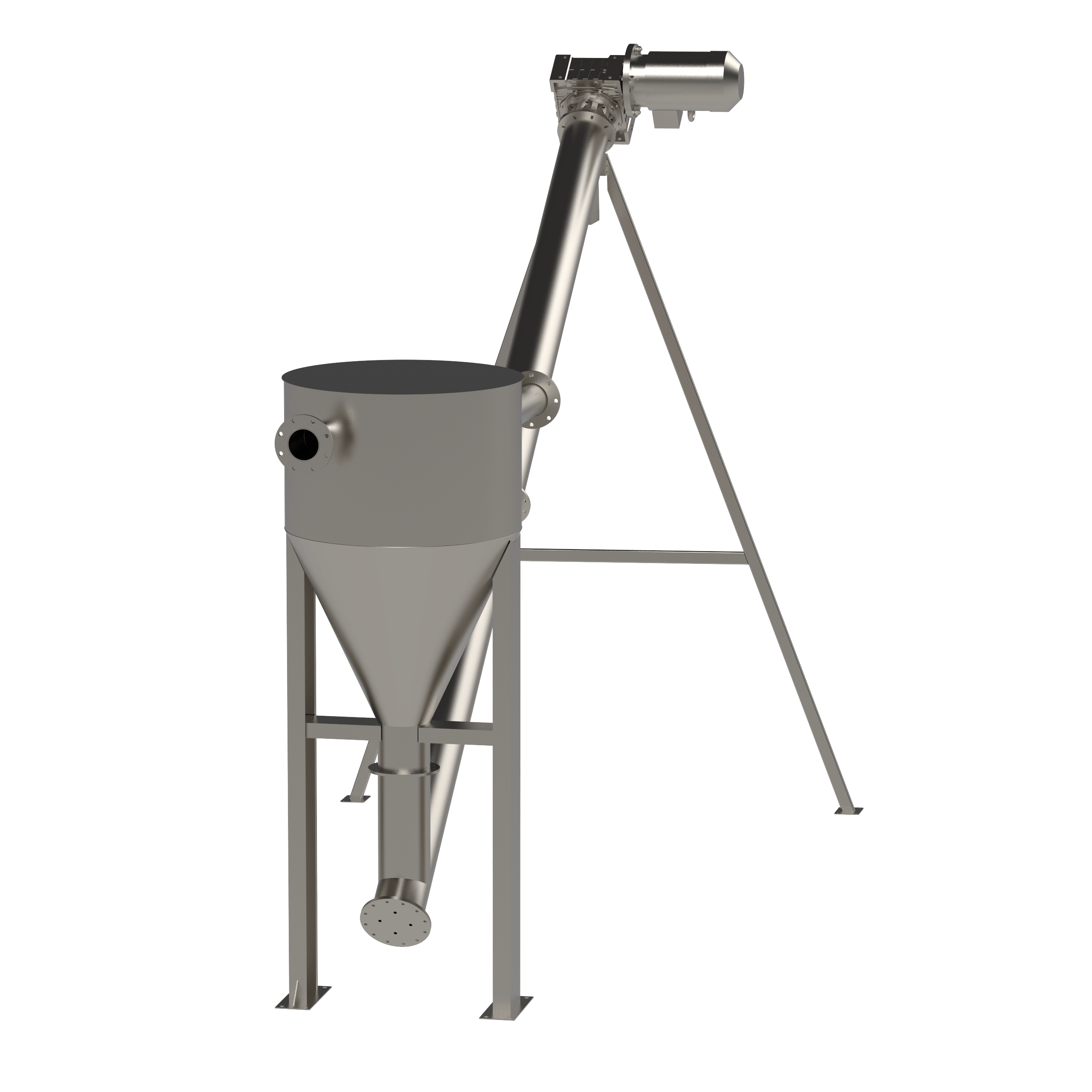 Песок, скапливающийся на дне под слоем воды, захватывается шнеком и поднимается шнековым транспортером до выходного отверстия сбросного патрубка.